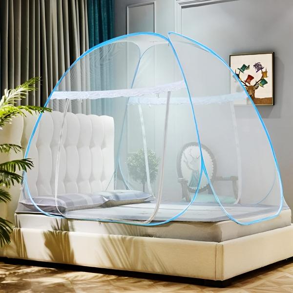 200 x 180 x 145 cm zakryje štandardné dvojlôžko s plnou výškou pre státie vo vnútri – dostatočne veľké pre dvoch dospelých alebo rodiča a dieťa. Použite ju nad jednolôžkom, detskou postieľkou, kempingovou podložkou alebo záhradným ležadlom. Skladací rám sa zbalí natoľko, že sa zmestí do kufra, takže ochrana cestuje s vami do prenajatých apartmánov, kempov a hotelových izieb, ktoré sa otvárajú na terasu.