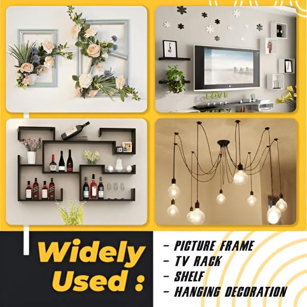 Ideálne na rôzne potreby domácej dekorácie, vrátane zavesenia obrazových rámov, lámp, závesov, hodín, rastlín a ďalších na sadrokartón alebo sadrové dosky.