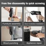 🔧 Flexibilný hriadeľ pre úzke miesta – dosiahne do uhlov a rohov, kam sa bežný skrutkovač nedostane, ideálny na montáž nábytku, opravy spotrebičov a domácu údržbu