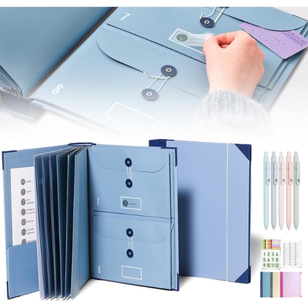 Obsahuje 10 rozširiteľných obálok (6 vo veľkosti A4, 4 polovičnej veľkosti) s kapacitou až 10 listov každá.